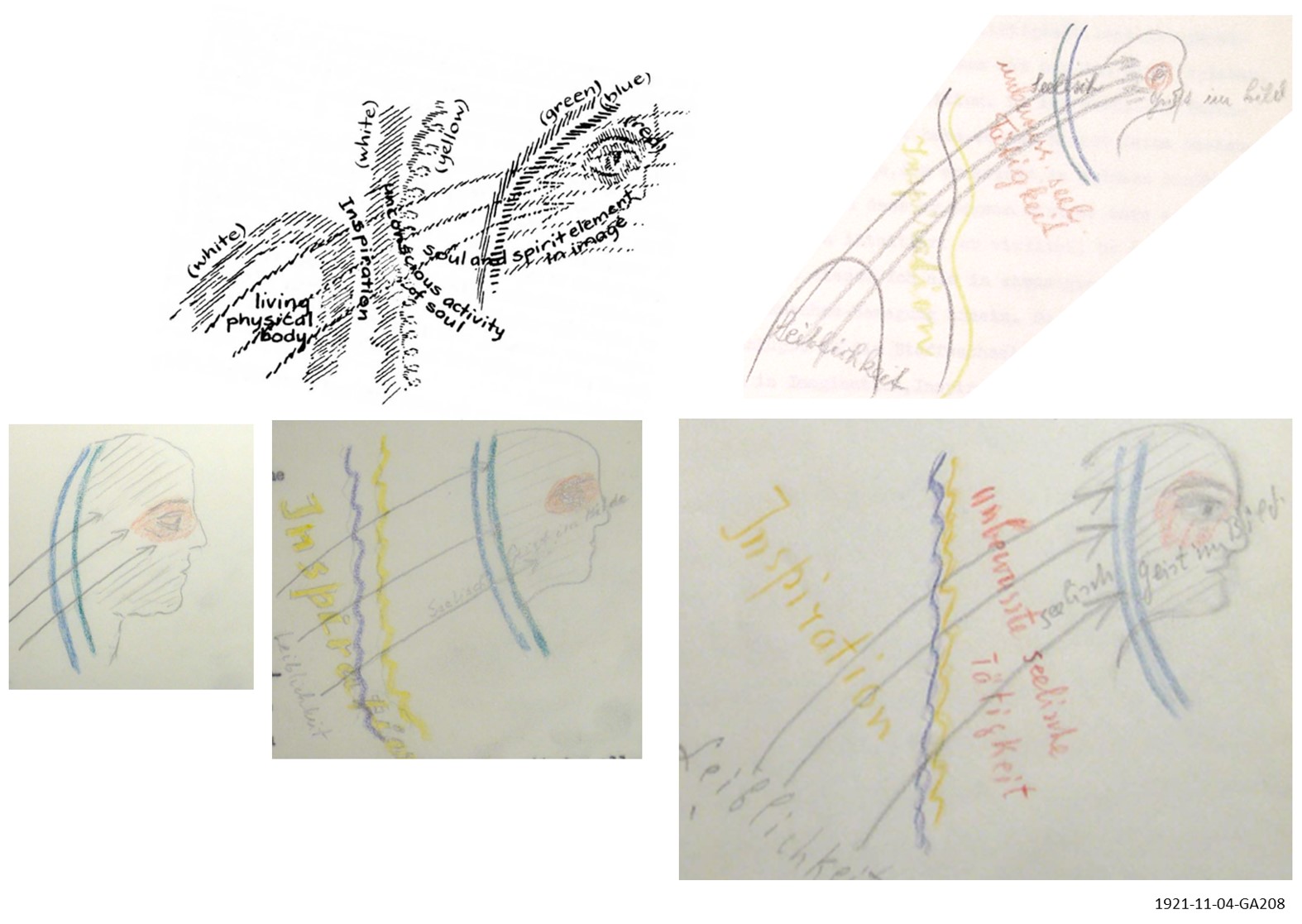 FMC00.230A shows various drawings from people attending the lecture of 1921-11-04-GA208, complementing the blackboard drawing (BBD) of Schema FMC00.230.