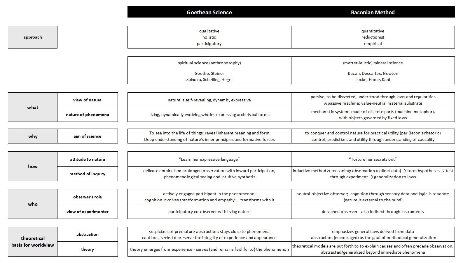 FMC00.682 positions Goethean science in comparison with the contemporary dominant Baconian scientific method underlying mineral science and materialistic worldview.