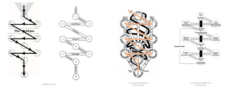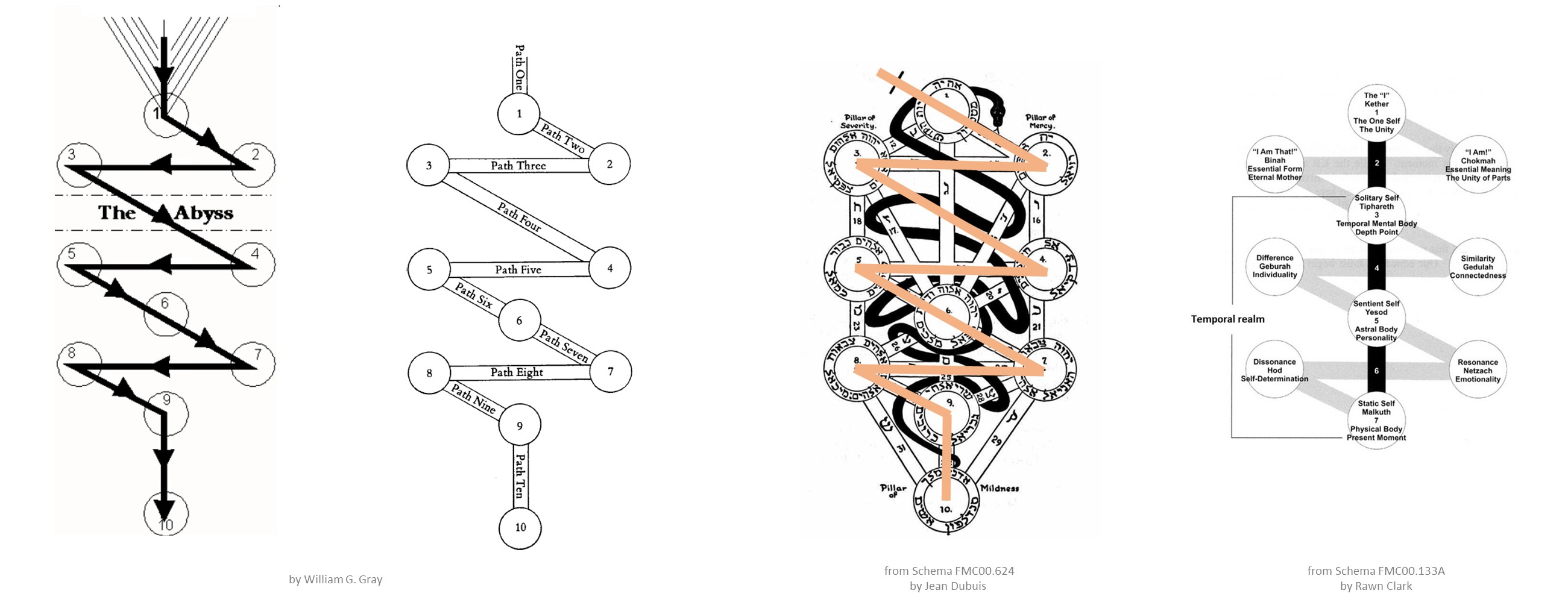 Starting on top, for a description of the first three in the supernal realm of the higher spirit world above time and space, see for example Rawn Clark on Overview Golden Chain#2023-02-14 - Rawn Clark. He starts from Kether or Crown as 'unity' or divine I, the first emanation and source of all the other sephiroth below, to go from .. I .. to .. I am .. and .. I am that .. (the latter also known in Hindu as 'tat tvam asi').